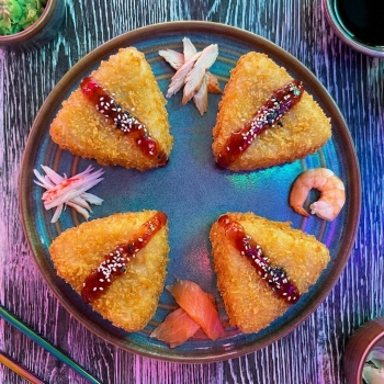 Онигири темпура с лососем,