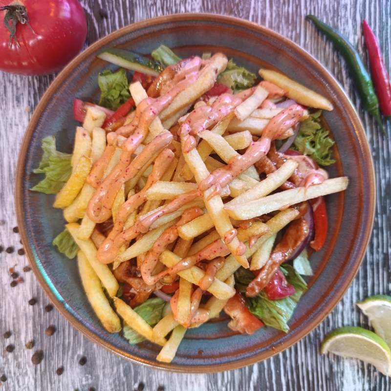 помидор, огурец, сыр фета, салат, маслины, лук красный, перец болгарский, лимон, масло оливковое, кинза, травы прованские